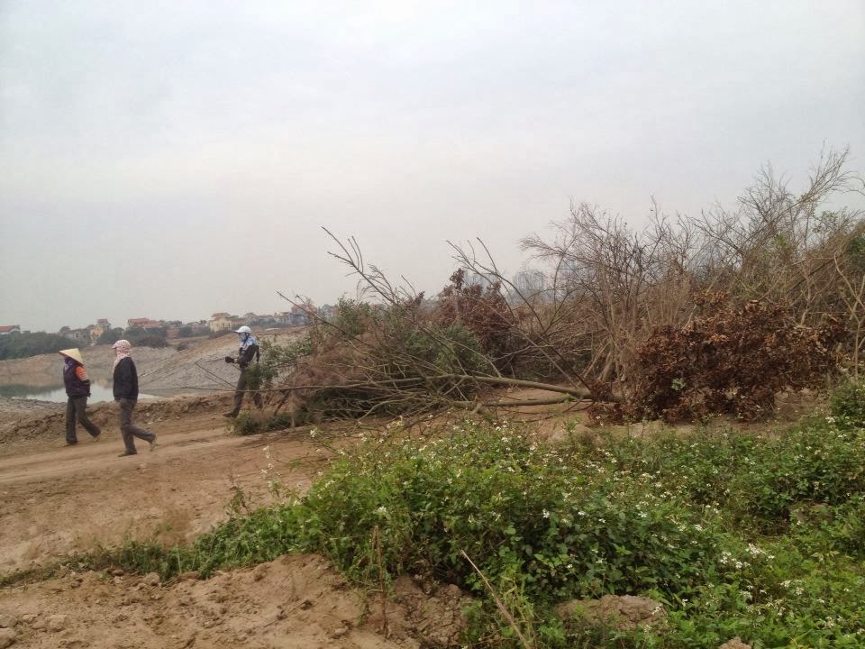 Dân Văn Giang tiếp tục dựng lều giữ đất, trồng cây.